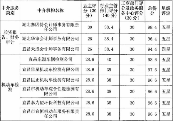 (通讯员:文琛)为进一步加大中介机构考核管理力度,2月22日,市政务服务中心管理办公室、行业监督管理部门、业主单位、工商行政主管部门对中介机构2018年度工作进行了综合考评并通报,宜昌东湖车辆检测公司荣获五星评定,在机动车检测行业中名列第一。