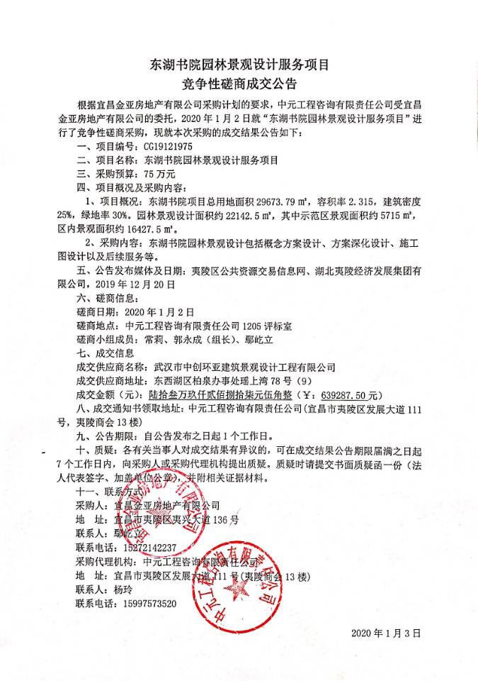 东湖书院园林景观设计服务项目竞争性磋商成交公告