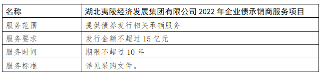 二、项目名称:湖北夷陵经济发展集团有限公司2022年企业债承销商服务项目