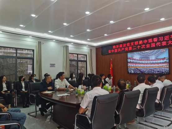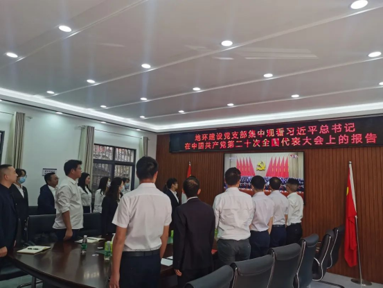 集团地环建设党支部组织支部党员干部、积极分子20余人在华成公司会议室集中收听收看了习近平总书记在中国共产党第二十次全国代表大会上的报告。会议开幕后,与会人员与二十大代表同步,全体起立,奏唱中华人民共和国国歌;肃然起立,一起为已故老一辈无产阶级革命家和革命先烈默哀。在休会时大家热烈讨论,纷纷表示要做好个人表率,走在前,学在先,当好党员先锋。作为集团建设板块重要组成部分,坚持党建引领,在规划设计、房屋测绘、工程项目建设、公路建设、建设工程质量检测等方面,实现创新发展,更好践行二十大精神。