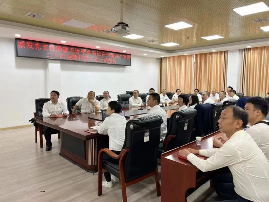 集团城发党支部组织全体党员干部及积极分子集中观看了习近平总书记在中国共产党第二十次全国代表大会上的报告。支部书记要求,全体党员干部要始终用新时代党的创新理论武装头脑、指导实践,增强“四个意识”、坚定“四个自信”、做到“两个维护”。下一步,城发支部全体党员干部将攻坚克难、开阔奋进,坚决守住守好意识形态的底线红线,突出统筹谋划、突出求实求效、突出结果导向,确保区委区政府和集团交办的各项工作落细落实落地,为全区重点目标贡献自己的一份力量。