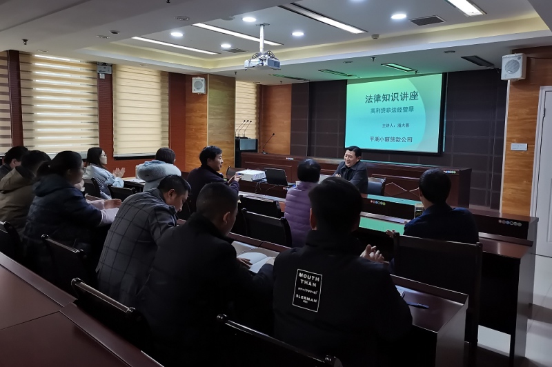 12月16日,平湖小贷公司举办法律知识讲座,邀请法律顾问、湖北百斯特律师事务所律师潘大喜对今年10月最高法将高利贷行为列入非法经营罪的内容进行了详细解读,进一步增强干部职工的法制观念,提高依法治企水平。平湖小贷公司全体干职工参加了讲座。